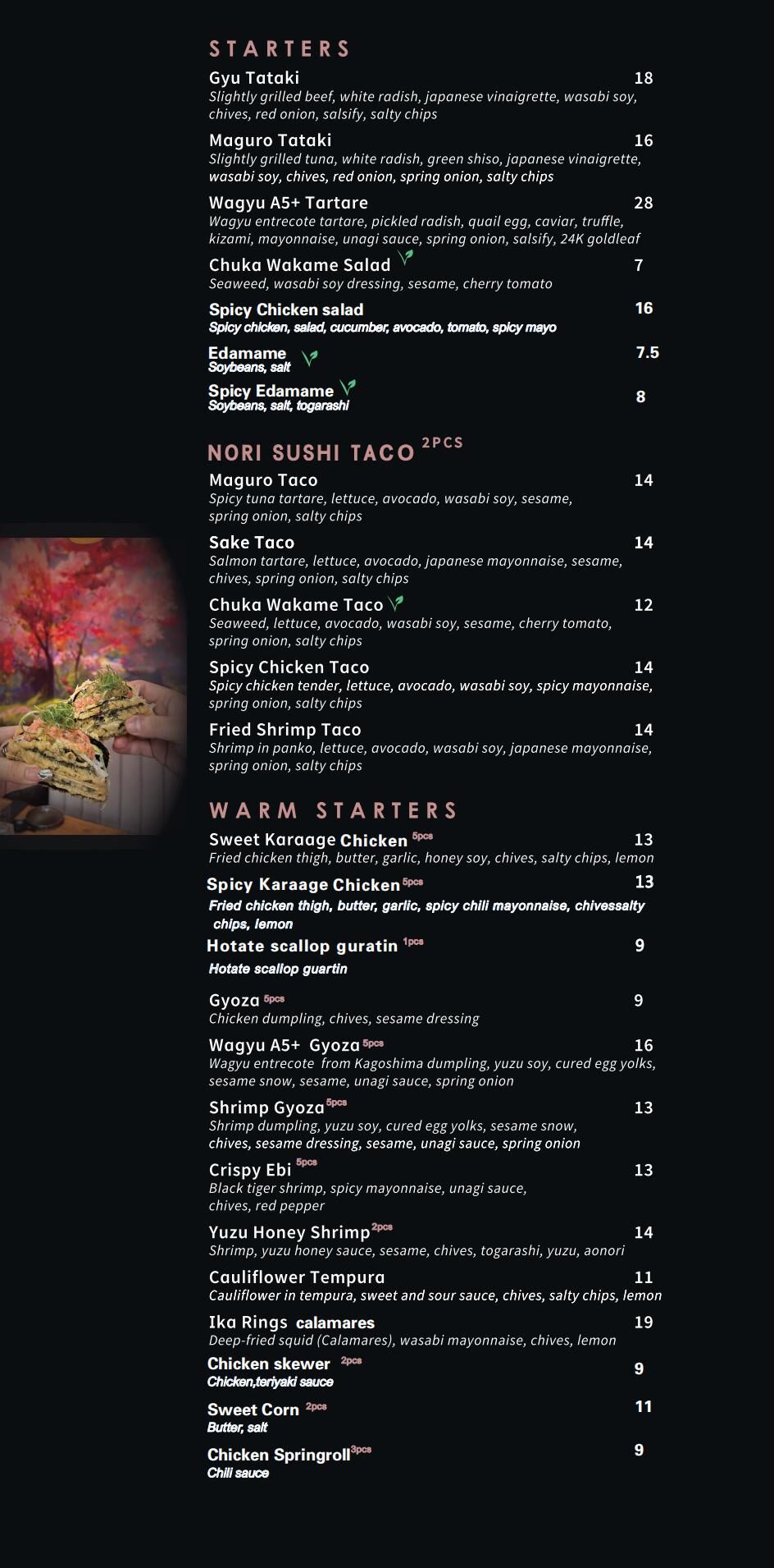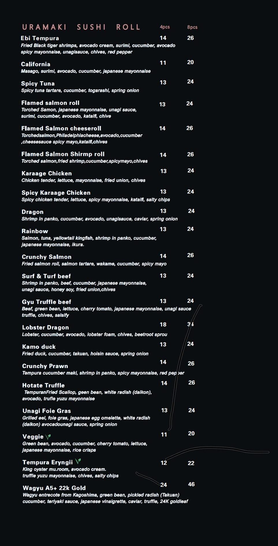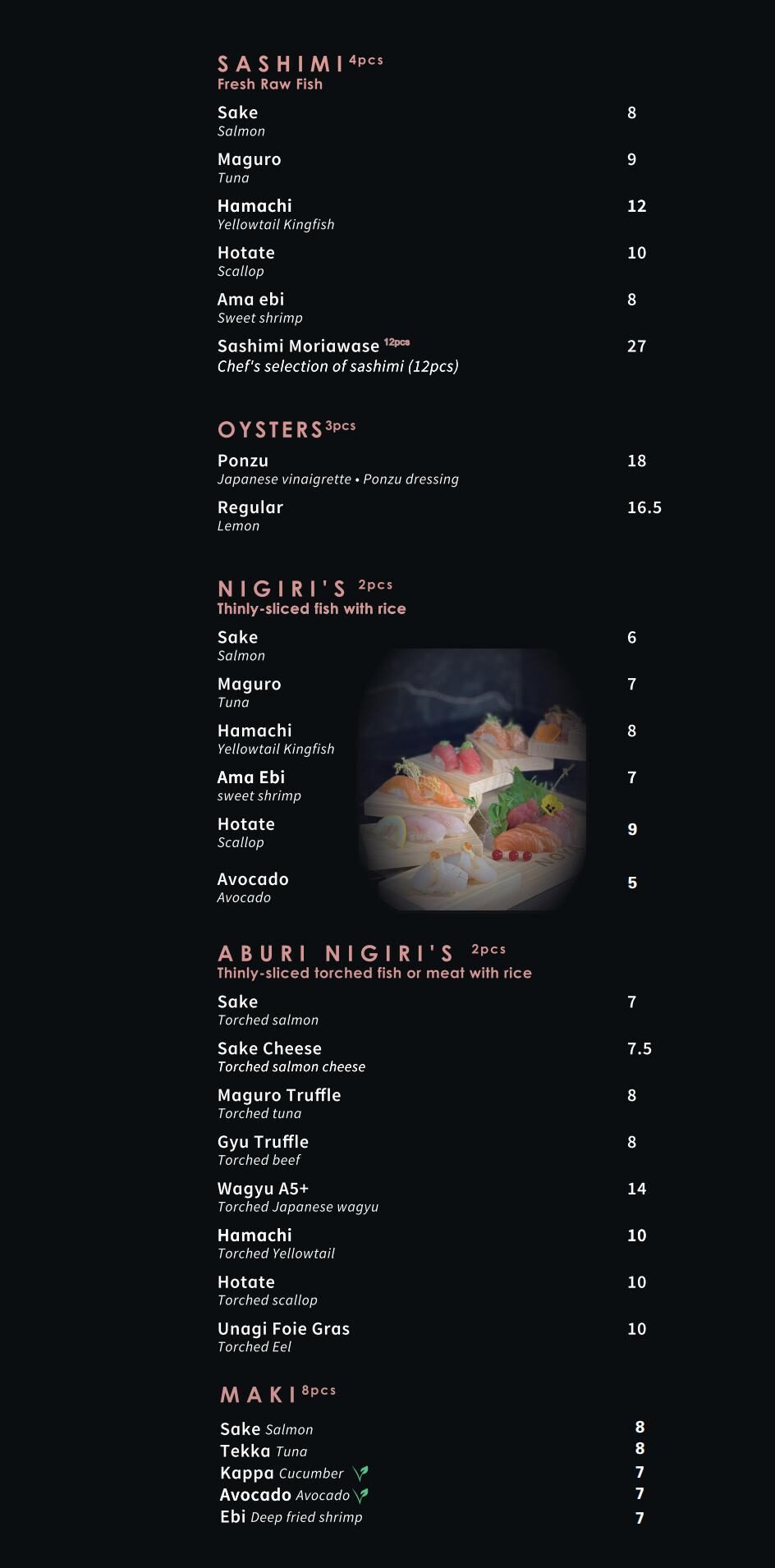 Our dishes are made small plates for sharing, so you can try a bit of everything. But if you prefer to keep it all to yourself, that’s okay too! Enjoy fresh sashimi,sushi, wagyu, seafood,meat and other tasty creations, all made with care.